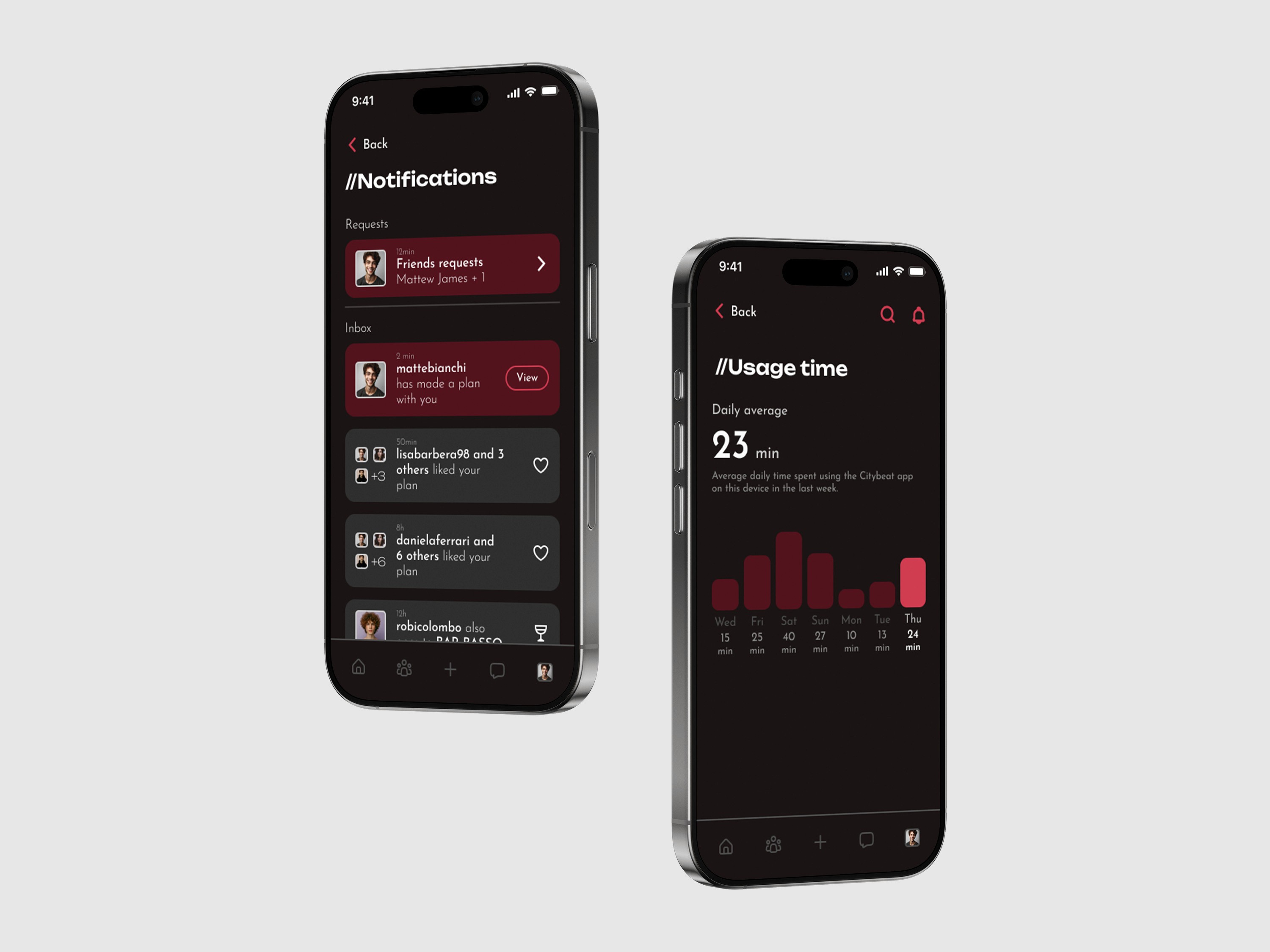 These mockups showcase CityBeat’s interface, the result of a user-centered design process. Every screen was carefully crafted to balance visual clarity, intuitive navigation, and seamless interactions, refined through multiple rounds of user testing and iterative prototyping.
